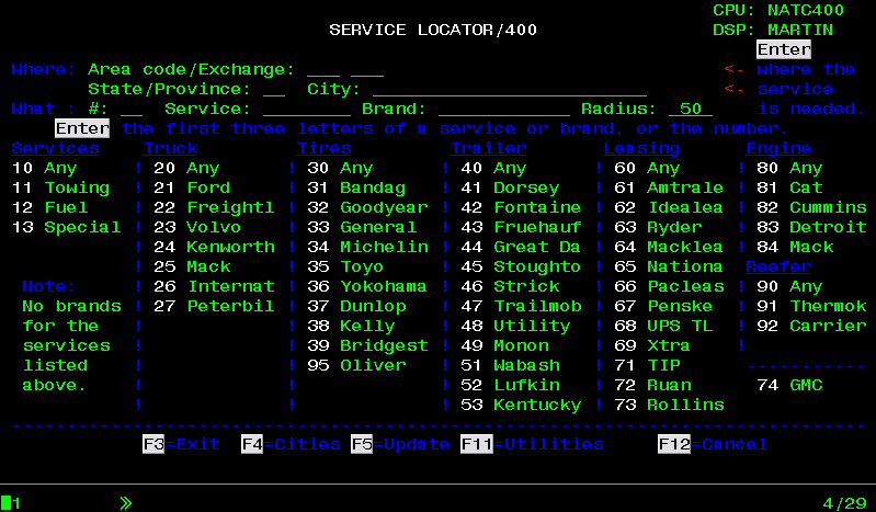 The Service Locator- AS/400 is a powerful application used by some of the largest trucking companies in the country.